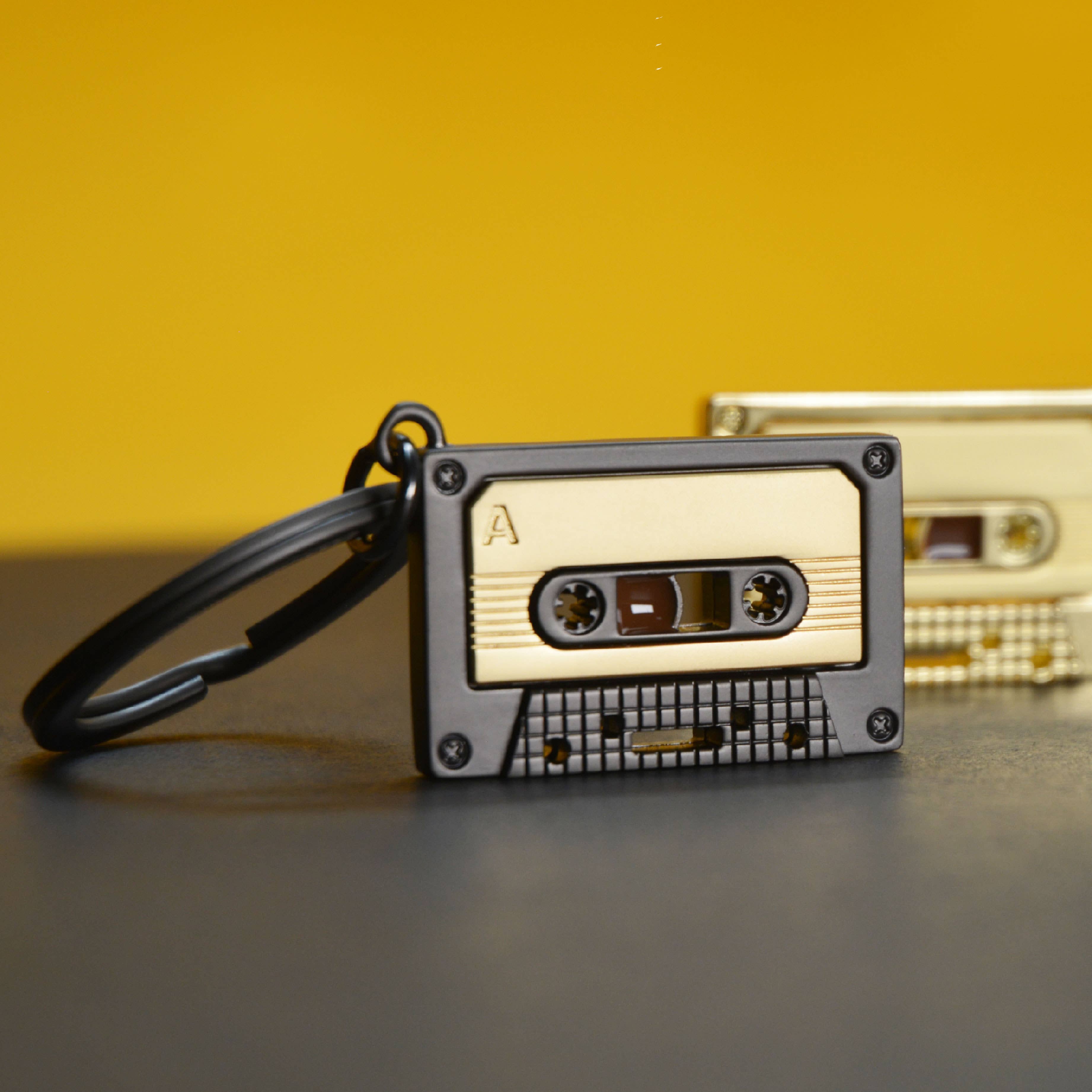 Metalmorphose Matt Grey & Gold Cassette Tape Keyring